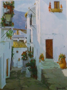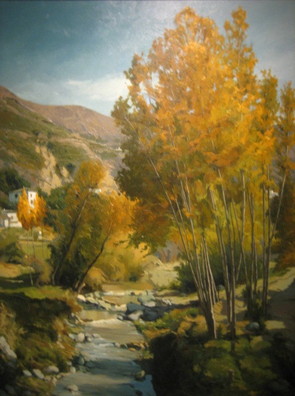 La emoción del pintor ante la naturaleza queda testimoniada en estos lienzos de encantadores rincones de la Granada singular, de sus caseríos apiñados bajo la Alhambra, a su sombra, junto al río Darro; o de sus pueblos alpujarreños, de montaña o de costa mediterránea. El espectáculo de los parajes altos de los ríos DÍlar, Genil yDarro, entre frondosos y amarillos álamos, se nos ofrece aquí poetizado por la traducción sensible del arte de este pintor que, a fines del siglo XX, sigue emocionado y emocionándonos ante el propio espectáculo de la naturaleza, diferente y distinta en cada lugar y a cada hora. Y saber captar lo pictórico también lo practica, en esa línea estética, ante las naturalezas vivas de los bodegones, cuidando con primor sus calidades cromáticas, lumínicas y plásticas;y ante la figura, en las que la maestría de escuela y oficio ajustadas calidades en los estudiados desnudos y expresivas presencias en los retratos y composiciones, tanto al óleo como al pastel o con técnicas mixtas.