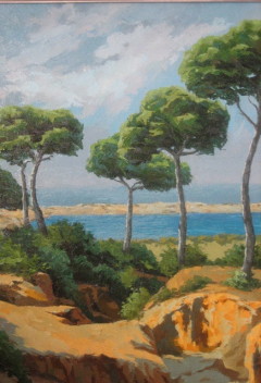 Pertenece a la escuela de abolengo y a unatierra de grandes temas pictóricos. En Granada, tras los López Mezquita, José María Rodríguez Acosta, Morcillo. Los Carazo, Soria Aedo y otros, se produjo también la ruptura de las vanguardias, con nombres significativos a nivel nacional e internacional. El siguió sin embargo, la línea de los anteriores a éstos e irrumpió fundamentalmente en la especialidad de la pintura del paisaje a “ pleno aire”, casi enlazando con los principios estéticos de un Corot, cuando afirma sobre la estructura de sus paisajes: “ Jamás me apresuro a fijar de talles. Primero y ante todo me intereso por las grandes masas y el carácter general de un cuadro; cuando éstos están establecidos, ensayo las sutilezas de forma y color”.